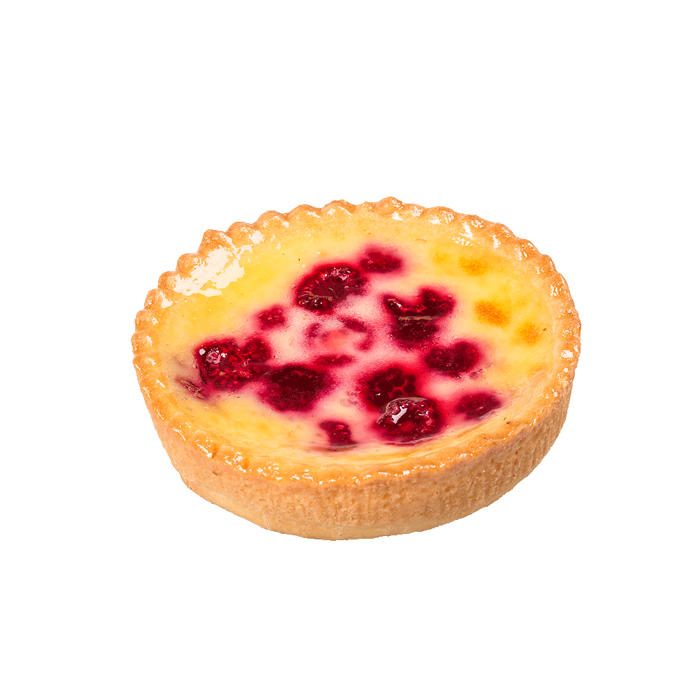 Fresh raspberries with Gumnut homemade baked custard filling in a short crust pastry base.