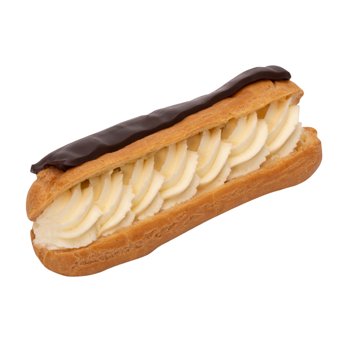 Our traditional éclair made with Gumnut Choux pastry then topped with chocolate ganache and piped with fresh chantilly cream.