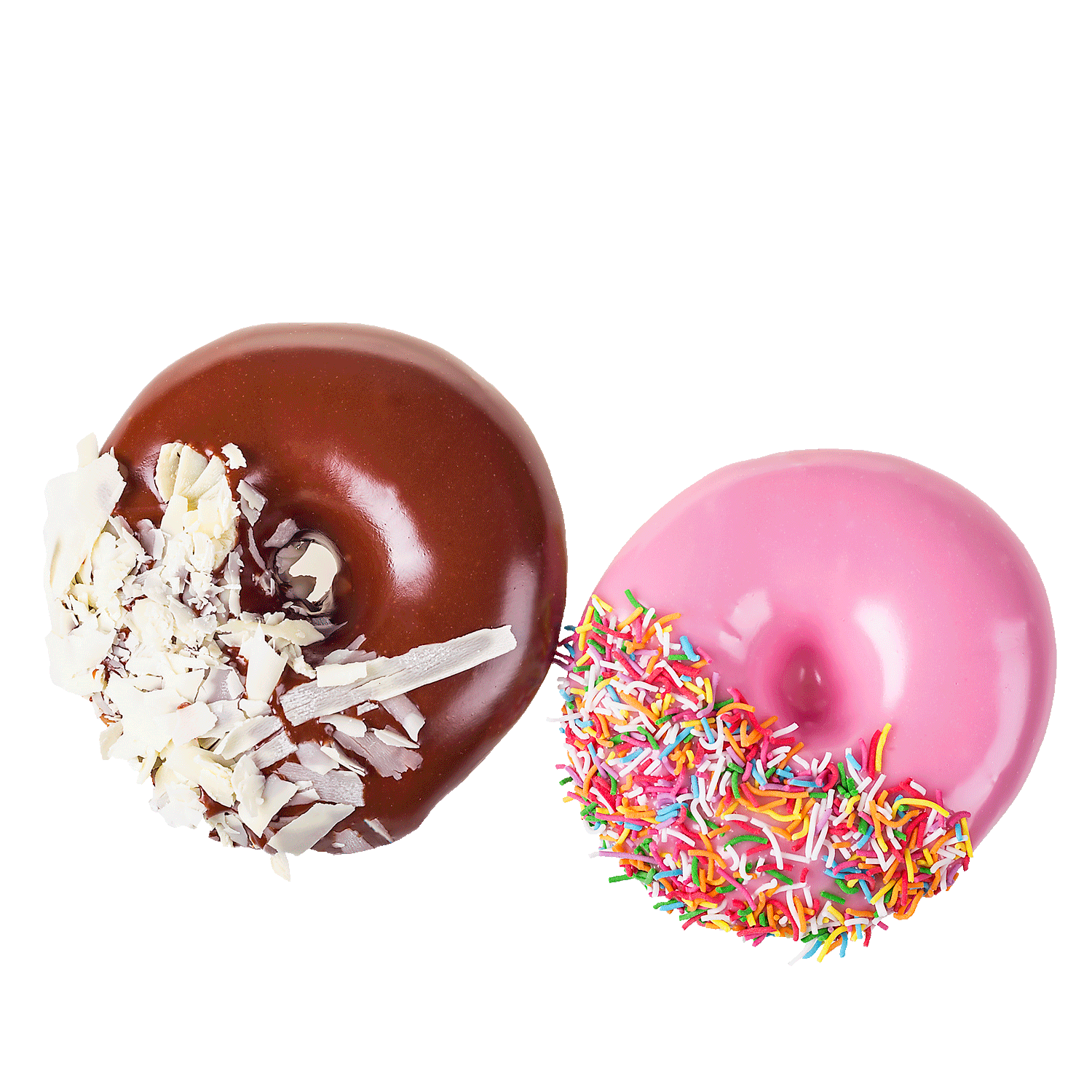 Our Donuts are not for the faint hearted. They are a large Donut that comes with Pink or Chocolate icing and trimmings to match.
