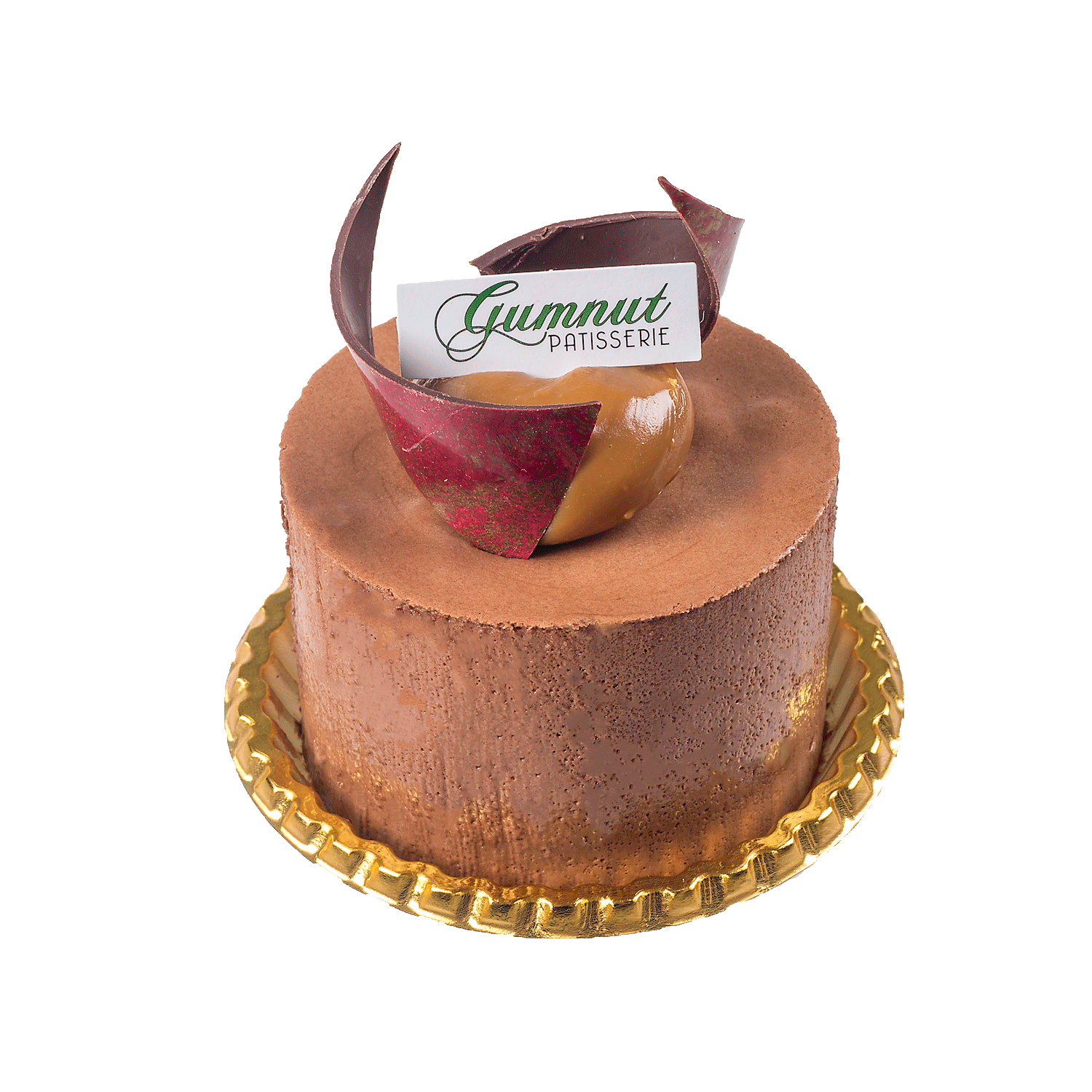A base of baked Chocolate Mousse with a soft caramel centre, topped with a light fluffy chocolate mousse. Garnished with our handmade chocolate decorations.