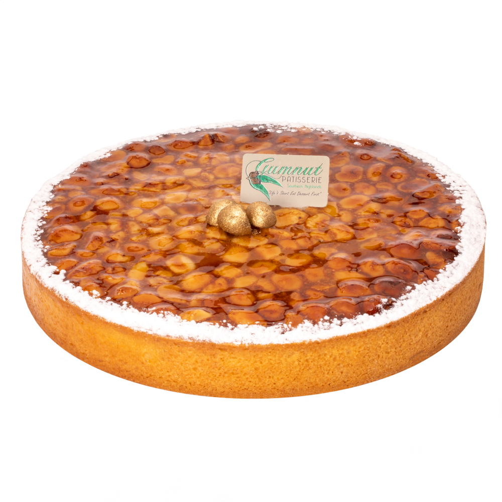 Macadamia nuts in a delicious Gumnut maple syrup filling on our handmade short crust pastry base.