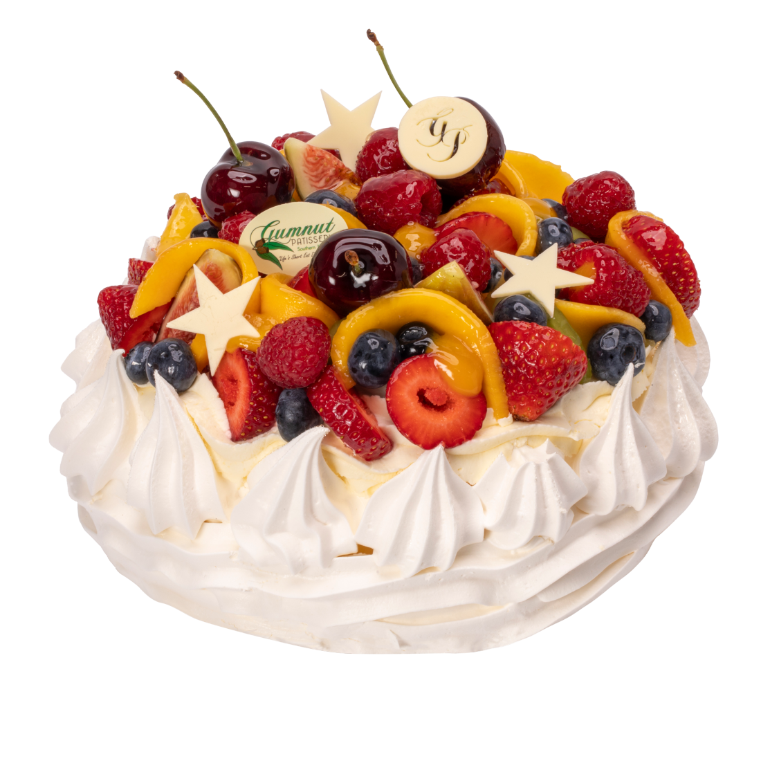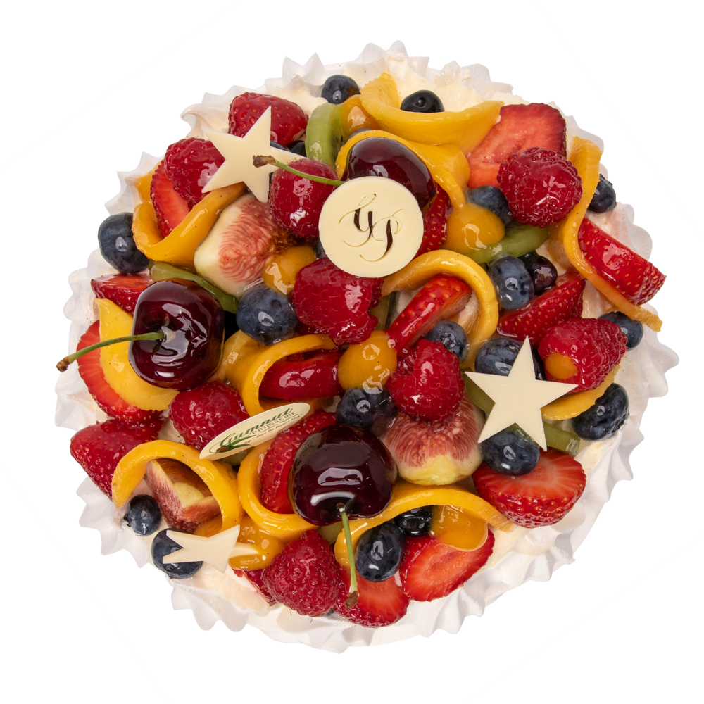 Gumnuts version of a family favourite the Pavlova. Dressed by our Master Pastry Chef with fresh fruit and handmade white chocolate decorations on a whipped cream filling.