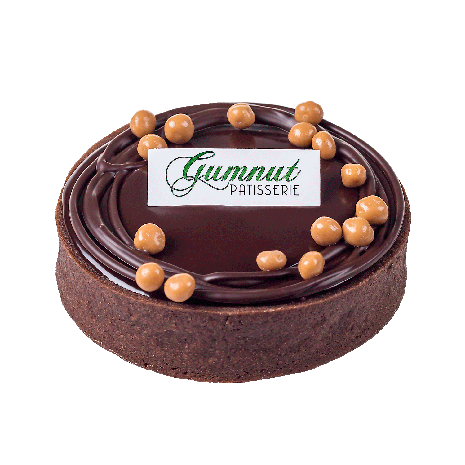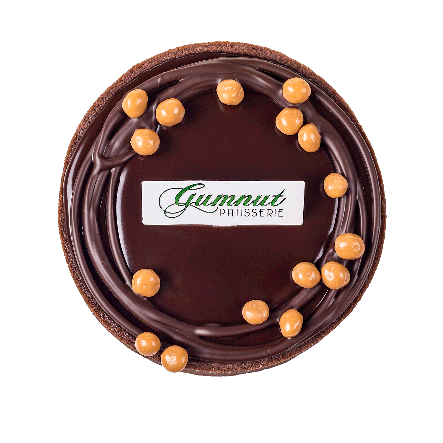 Gumnut handmade chocolate short crust pastry base filled with our salted caramel buttercream and topped with our dark chocolate ganache. Decorated with a crown of chocolate and salted caramel crispy balls.