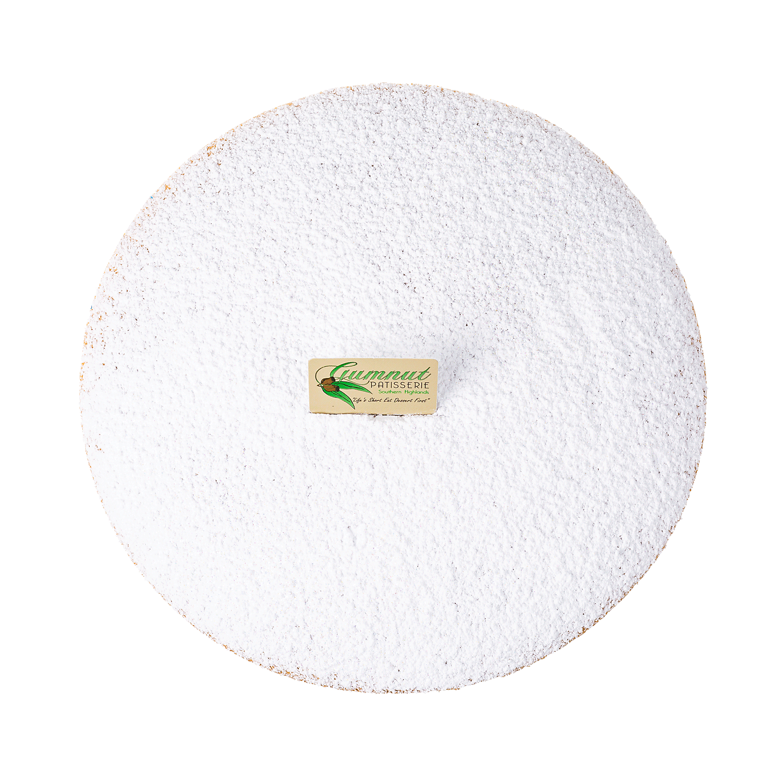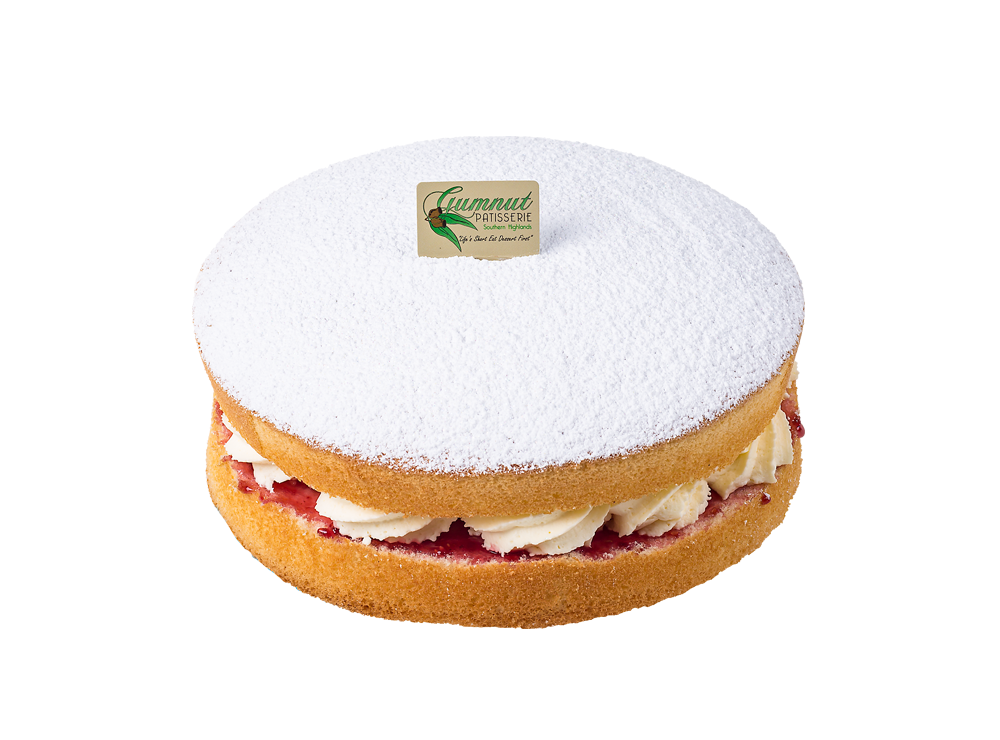 Vanilla sponge layered with Gumnut's Homemade Raspberry Jam and fresh cream then dusted in icing sugar and some magic twinkle sprinkle.